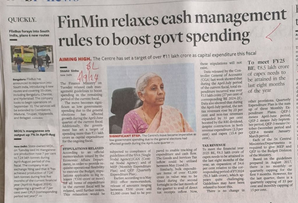 FM loosens her purse — flexible cash management at Government level—helps the overall system — Courtesy BL