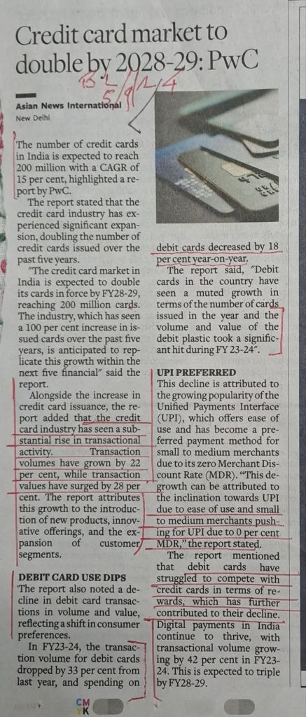 Credit Card business to double by 2028-29–predicts PwC– Courtesy BL