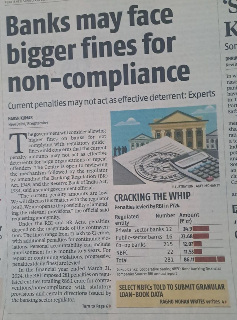 A news item that is disturbing –gives sufficient insight into where the banks are lagging behind RBI dictat–private banks lead the pack — Courtesy BS