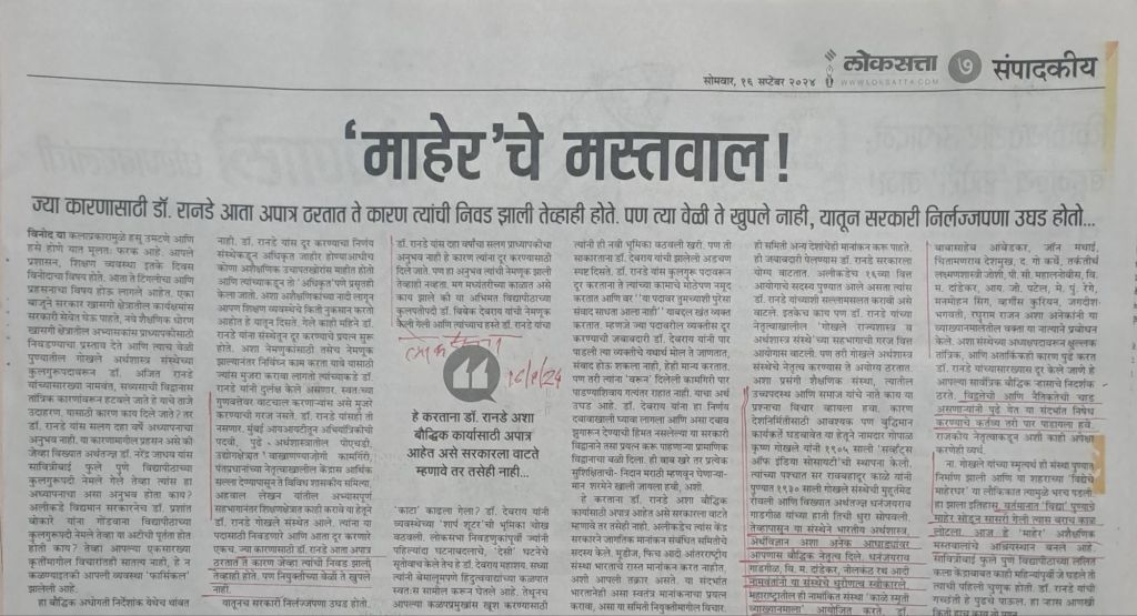डॉक्टर अजित रानडे यांना का हटवले गेले ? — सौजन्य लोकसत्ता अग्रलेख