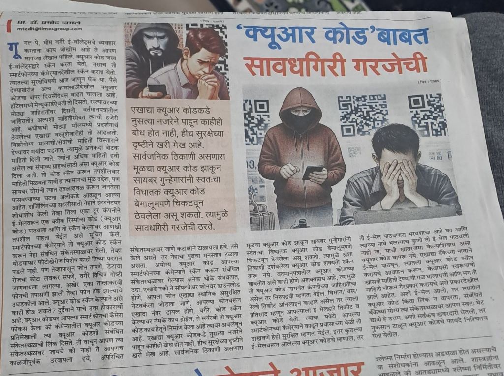 Article by Ex-BoM– care that needs to be taken while scanning QR Code — Courtesy Maharashtra Times