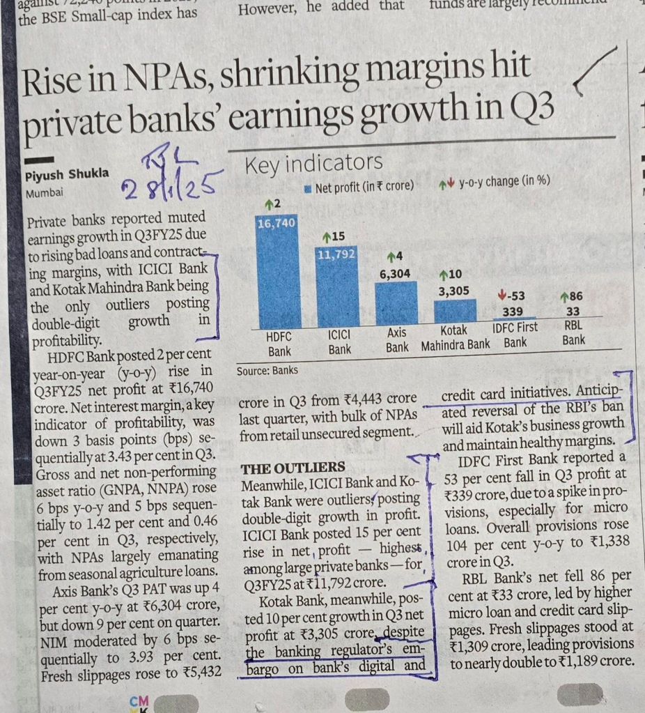 Profit growth–Amongst Private Sector Banks — ICICI and KOTAK are outliers — Courtesy BusinessLine