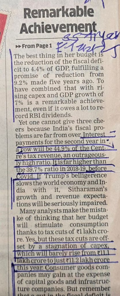 MR Aiyar [ ET ] gives a pat for adhering to fiscal deficit targets — Courtesy ET