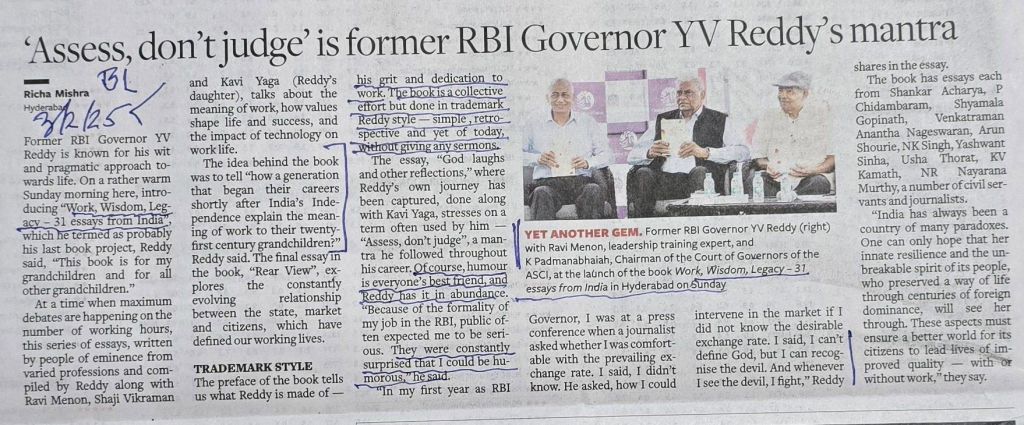 *Book by Ex RBI Guv Mr Reddy –worth reading – – Courtesy BusinessLine