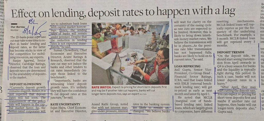 Repo Rate Cut — when and to what extent it will transmit –Courtesy BusinessLine