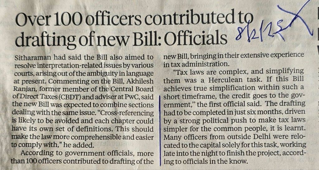 What went into preparation of new income tax bill ? — Courtesy Business Standard
