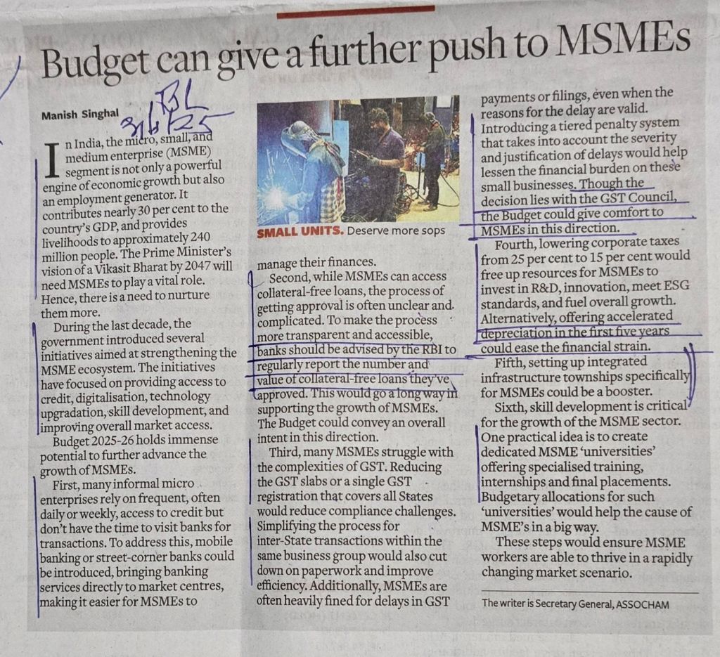 Budget expected to give a filip to MSMEs — Courtesy BusinessLine