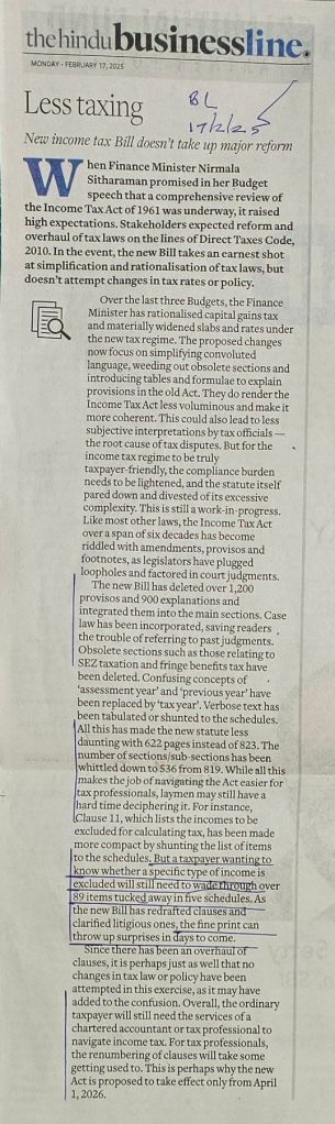BusinessLine editorial not too enthusiastic about new income tax bill — read on to know why ?