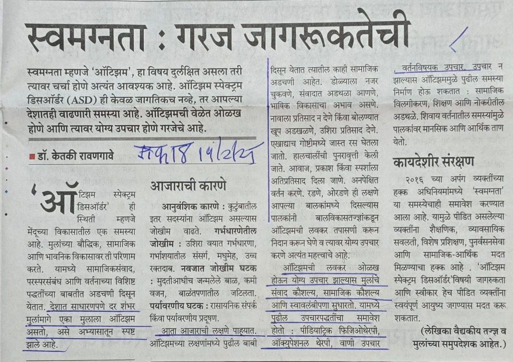 स्वमग्नता — काय करणे गरजेचे आहे ? सौजन्य सकाळ