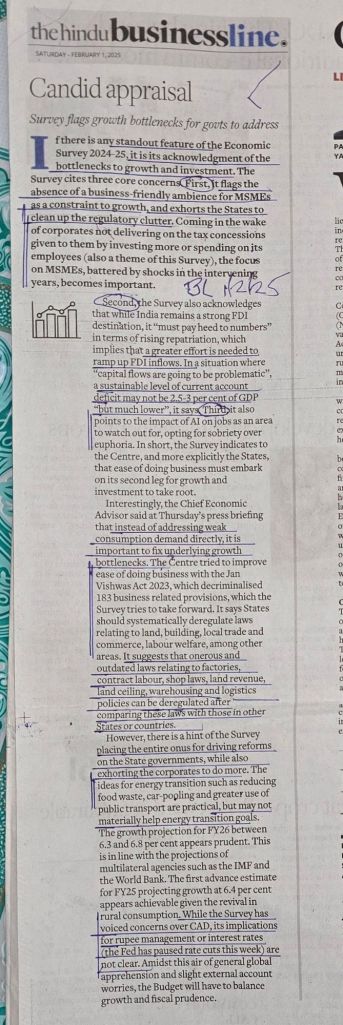 BusinessLine Editorial lriases the Economic Survey as being a candid appraisal– Courtesy BusinessLine