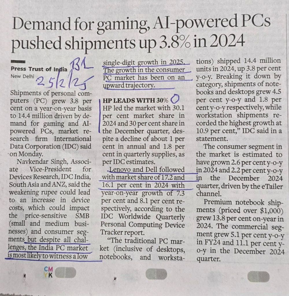Computer Hardware Industry– prospects ahead– HP with 30% share continues to be number 1– Courtesy BusinessLine