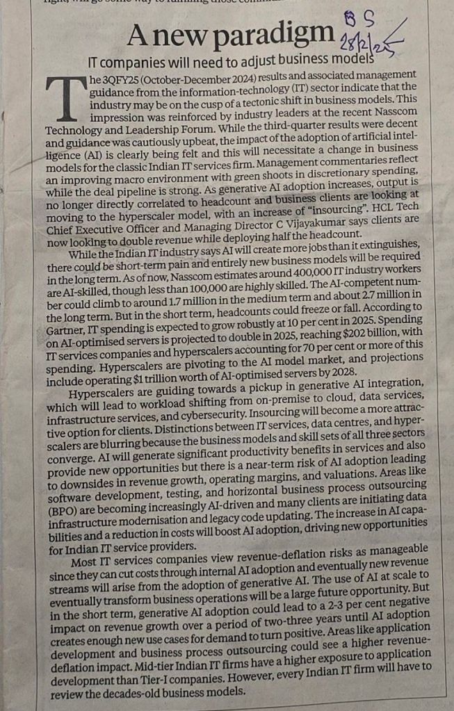 HCL Tech CEO & MD — ” clients are now looking to double revenue while deploying half the headcount ” [2] editorial also dwells on how IT Business is changing and that too rapidly — Courtesy Business Standard
