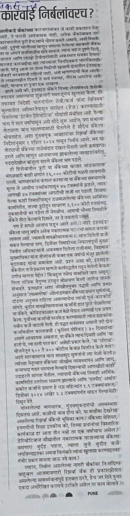 This article in Loksatta refers to IndusInd saga [2] pitches for some remedial measures —