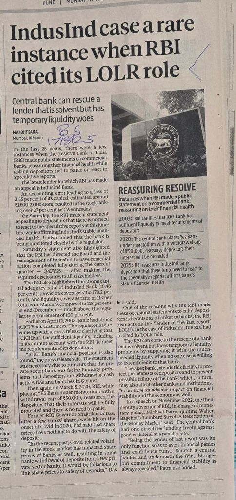 Ex RBI DG Mr Patra — quoting Walter Bagehot’s Lombard Street: Description of the Money Market ” The Central Bank had one objective–” Lending freely against good collateral at a penalty rate “