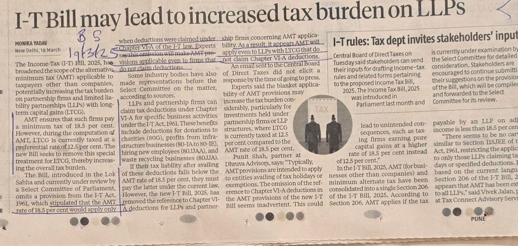 New IT bill — likely to put partnership firms and LLPs at disadvantage– Courtesy Business Standard