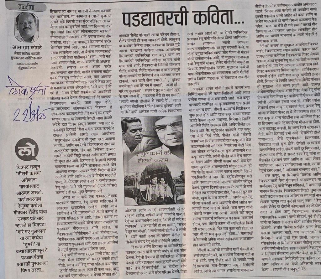 तिसरी कसम– काय काय घडले ? शेवट का बदलला गेला नाही ? सौजन्य लोकसत्ता