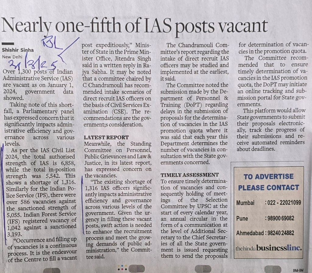 Not only IAS but also IPS and IFS posts remain vacant [2] one of the likely steps –DoPT may initiate an online tracking and submission portal for the State Governments — Courtesy BusinessLine