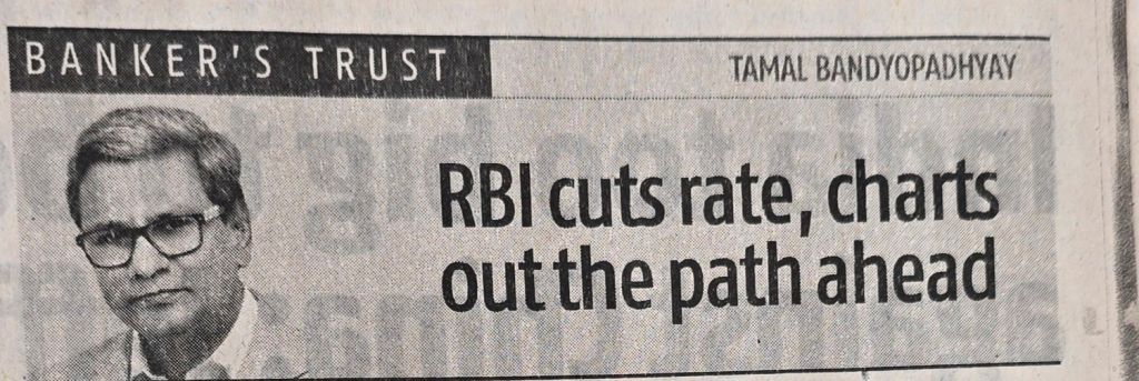 On Rate Cut and change of stance from neutral to accommodative –Mr Bandyopadhyay responds [1] despite this, stock market indices dropped and bank stocks tumbled — due to concern of an economic slowdown which is official now [2] And banks will have a challenging time– with the policy rate going down, the loan rate for a sizeable chunk of their portfolio will have to be paired but they won’t be able to bring down their deposit rates to that extent–[3] NIM will suffer– Courtesy Business Standard