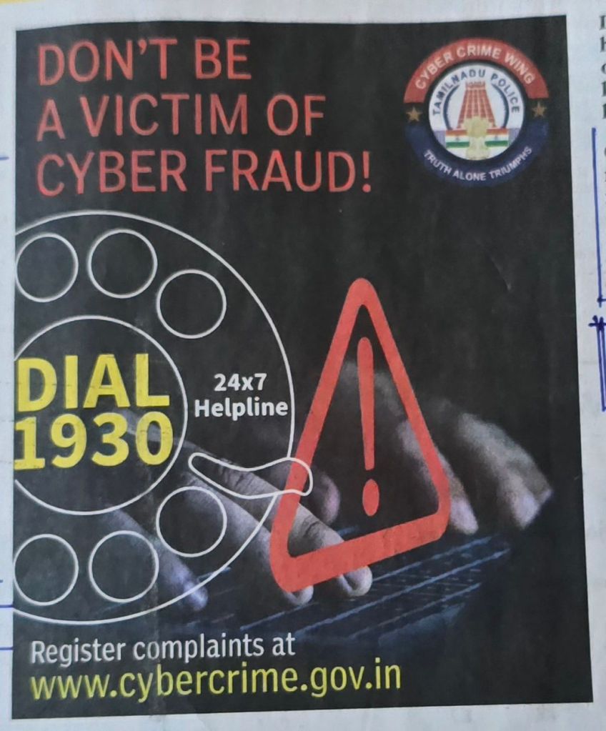 [1] If you see your phone is getting hacked or you have lost money– call 1930 immediately [2] As soon as complaint is registered, the process of freezing bank accounts [of culprits] starts automatically [3]Control room works 24×7 with 15 persons available at any given point of time– Courtesy BusinessLine