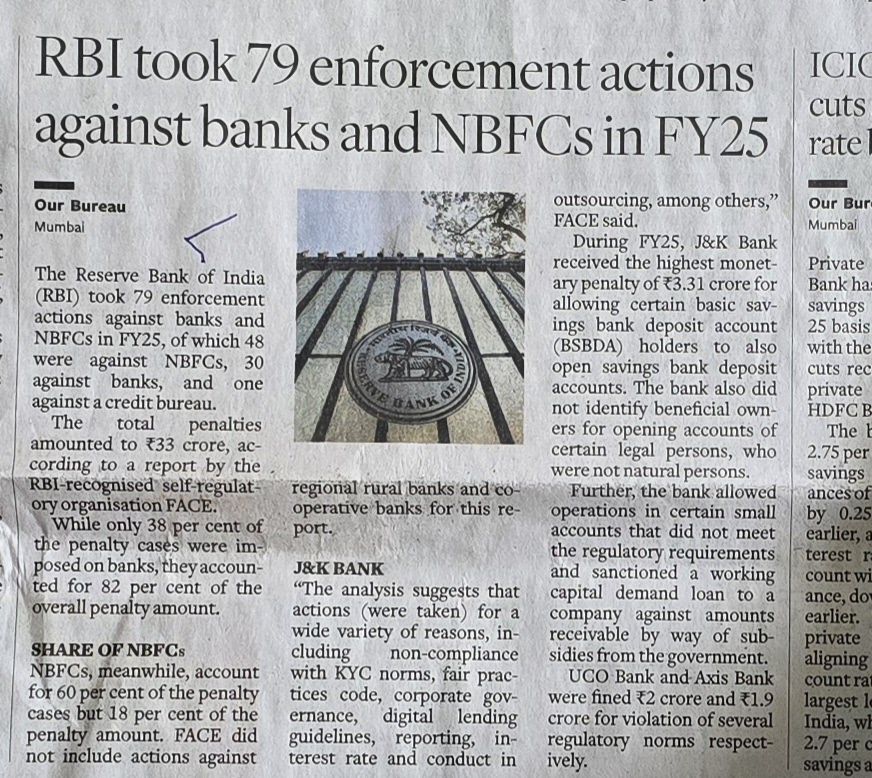 RBI tries to enforce discipline through penalties– Courtesy BusinessLine