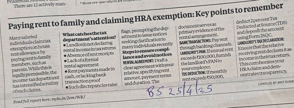 Rent Payment to relatives and exemption – what steps we need to follow ? Courtesy Business Standard