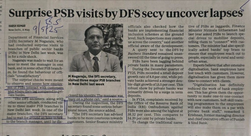 DFS Secretary — who wanted to talk to the branch manager of Public Sector Bank — was made to wait for an hour as manager was busy on a phone call –Courtesy Business Standard