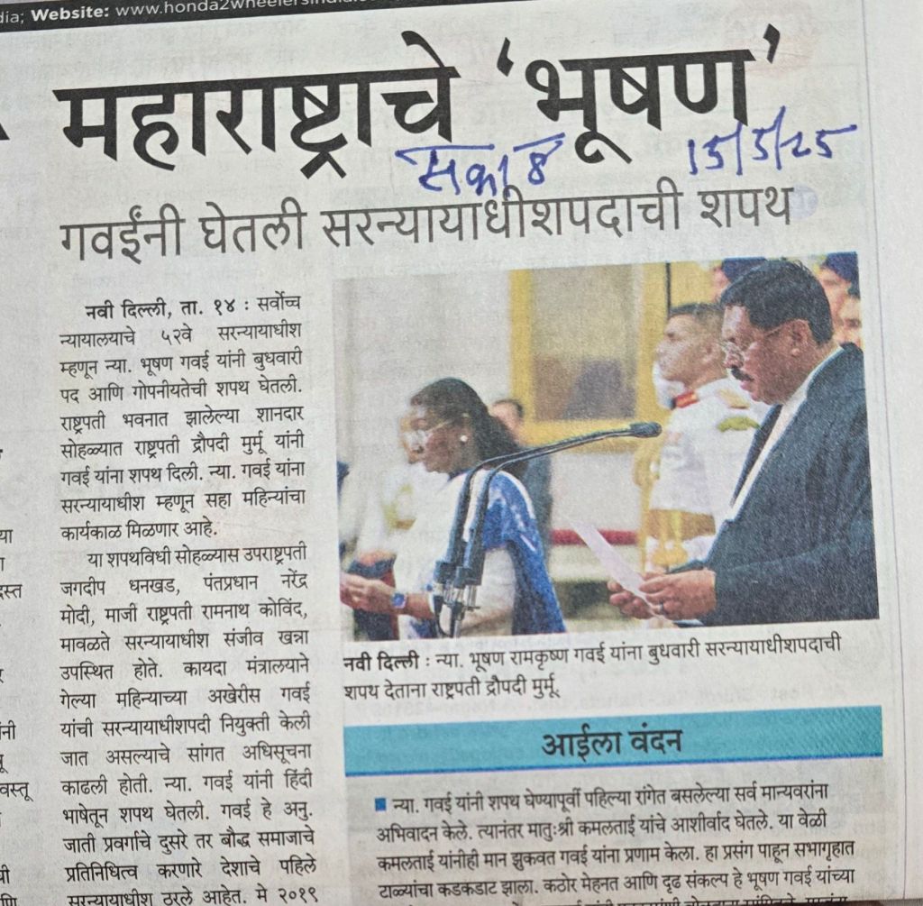 स्वागतार्ह हेडिंग — सकाळची सुरुवात ” सकाळ ” च्या कौतुकाने झाली —