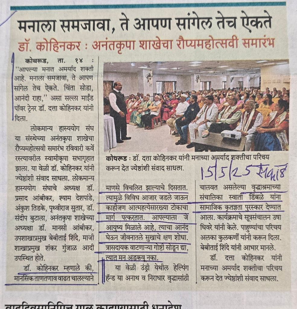The most difficult task is whether we succeed in handling our mind [ and the goings on inside the mind ] — Courtesy Sakal