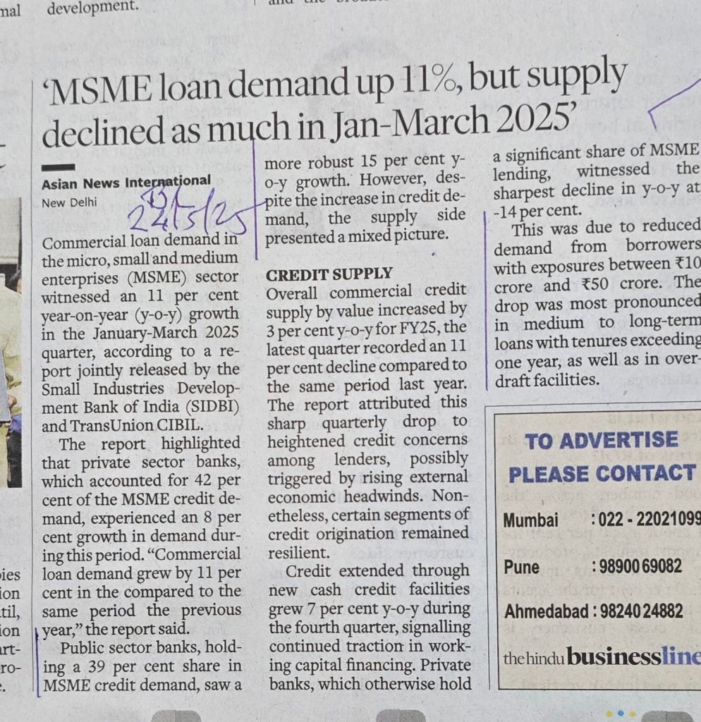 MSME loan demand up but supply still falls short — Courtesy BusinessLine