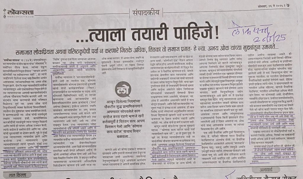 Editorial on Justice Oak–Supreme Court judge–his ideals are worth following — Courtesy Loksatta