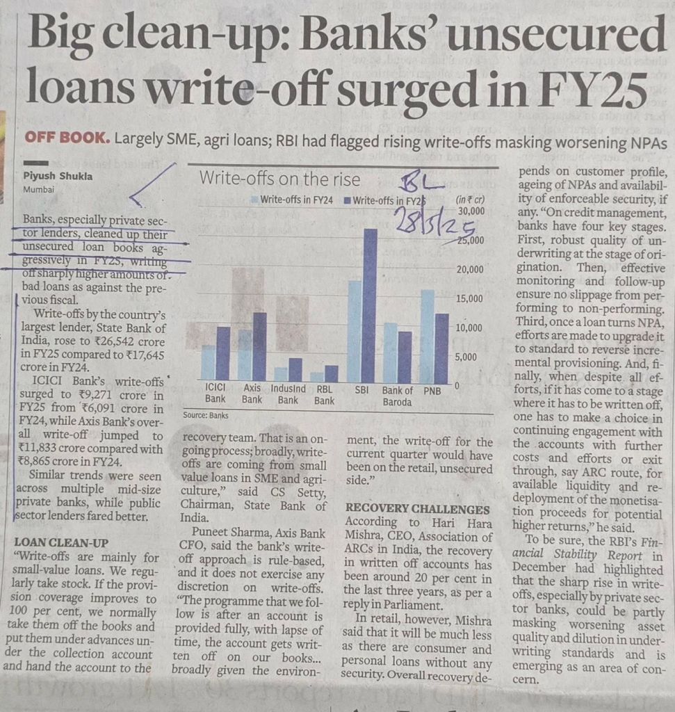 बॅंकांना तारण नसलेल्या कर्जाबाबत काय अडचणी सहन कराव्या लागत आहेत याची माहिती– सौजन्य BusinessLine