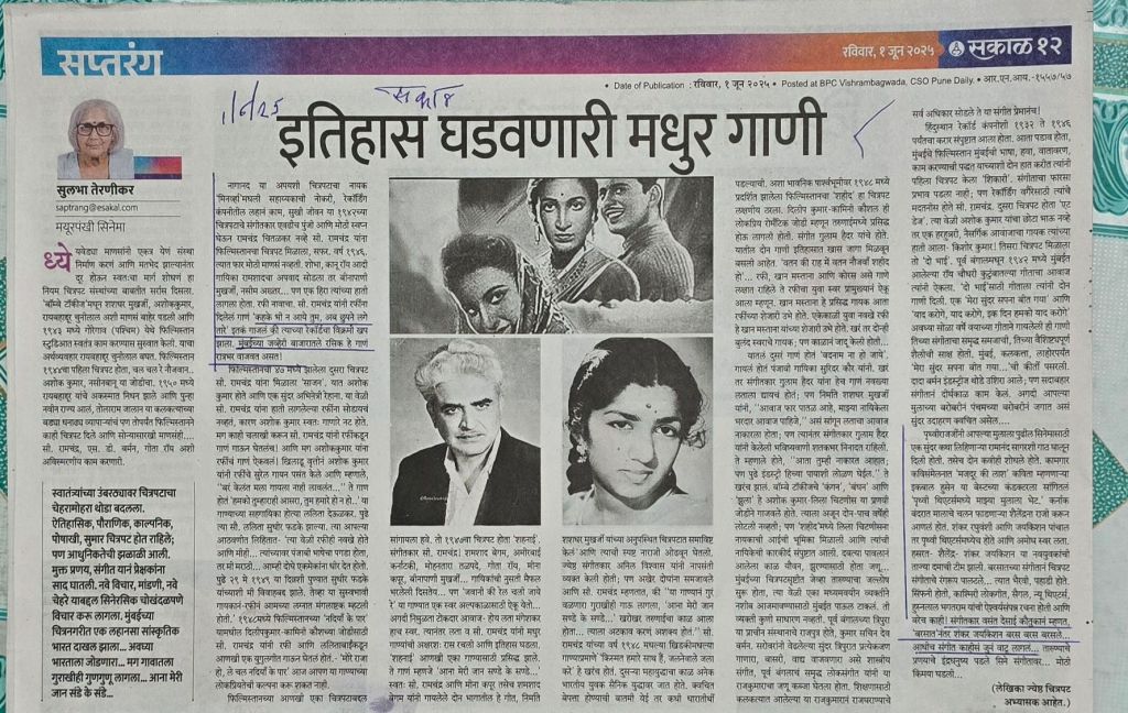 हा लेख वाचून भूतकाळात रमून गेलो [2] सी रामचंद्र– लता मंगेशकर– अशोककुमार — शंकर जयकिशन– शैलेंद्र– हसरत–यांच्याबद्दलच्या आठवणी — सौजन्य सकाळ