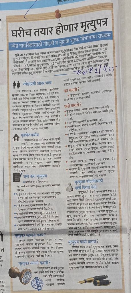 *******How to prepare Will ? –Excellent guidance in simple language regarding preparation of will [2] It is noteworthy to understand the initiative of Pune Stamp Duty Authorities –Courtesy Sakal