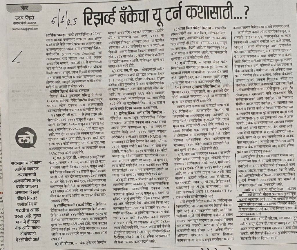 गरजेचा आहे का निरंतर क्लिअरिंग चा RBI चा प्रस्ताव ? श्री पेंडसे यांचा लेख खूप काही सांगून जातो–[2] सहकारी बॅंकांना सॉफ्टवेअर — स्कॅन मशीन खरेदी साठी मोठ्या प्रमाणावर गुंतवणूक करावी लागणार आहे — सौजन्य लोकसत्ता