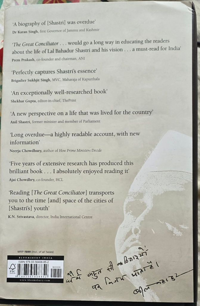 Great words from Great leader Late PM Shri Lal Bahadur Shastri– image from book on him by Sanjeev Chopra Ex IAS