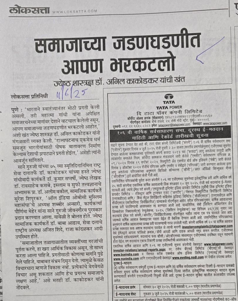 ज्येष्ठ शास्त्रज्ञ डॉक्टर अनिल काकोडकर यांची खंत– सौजन्य लोकसत्ता