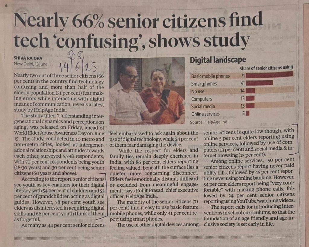 Grand children are taking lead to educate their grand fathers but [2] 78% of youth see elders as disinterested in acquiring digital skills and 66% youth think of them as forgetful– Courtesy Business Standard
