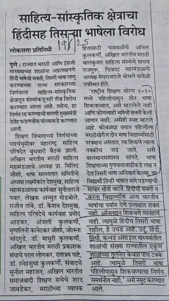 Why there is opposition to Hindi as third language in primary schools in Maharashtra ? Courtesy Loksatta