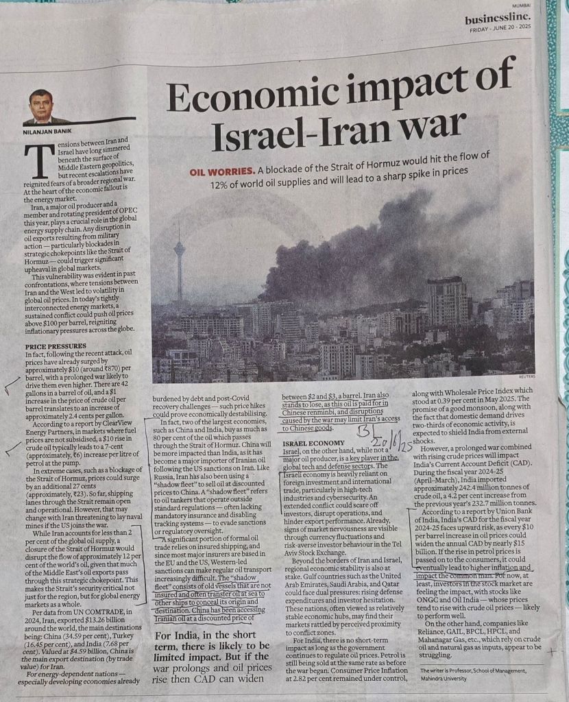 Useful additional information about impact of Israel-Iran war– Courtesy BL