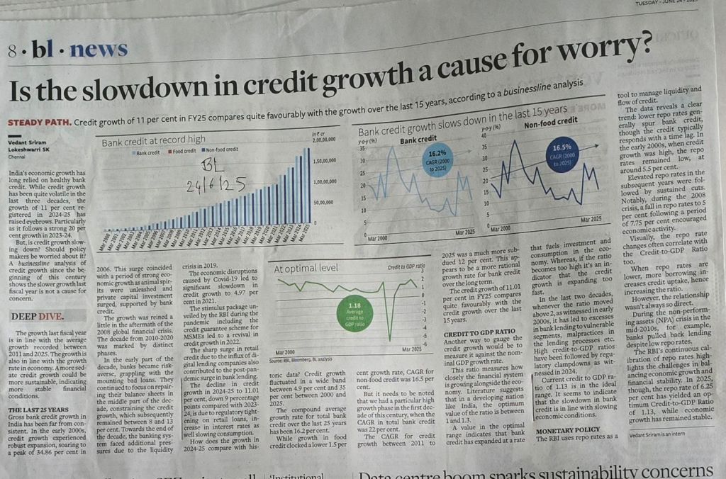 Whether credit growth deacceleration is a cause for worry? [2] — Current credit to GDP ratio of 1.13 is in the ideal range –surmises the article– Courtesy BusinessLine