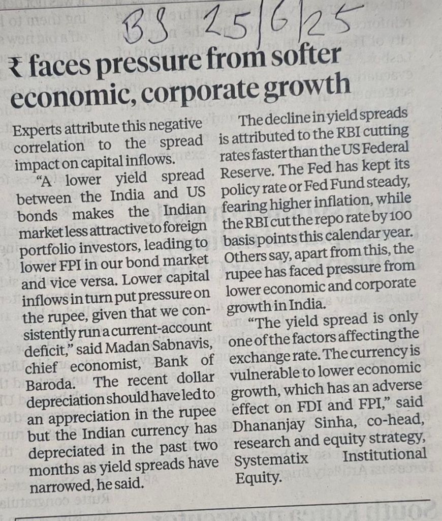 Consequences of rate cuts and Rupee Dollar exchange rate– (2)  Lower yield spread between US and India bonds makes the Indian market less attractive to foreign FPI which affects dollar inflows – Courtesy Business Standard