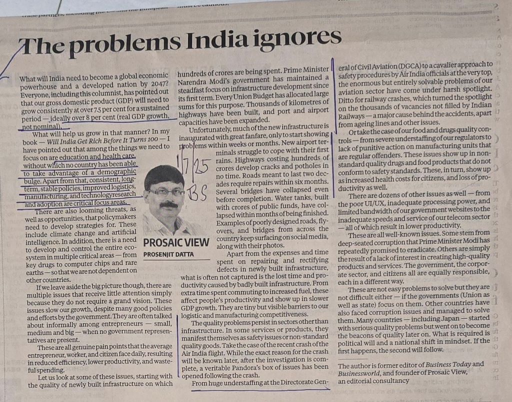 2047 goal –[1] Year after year — growth [ real and not nominal ] has to be over 8% [2] we need to focus on education and health– if only to take demographic advantage [3] other equally important areas –Aviation– Railway etc as also eradication of corruption cannot wait any longer– Courtesy Business Standard