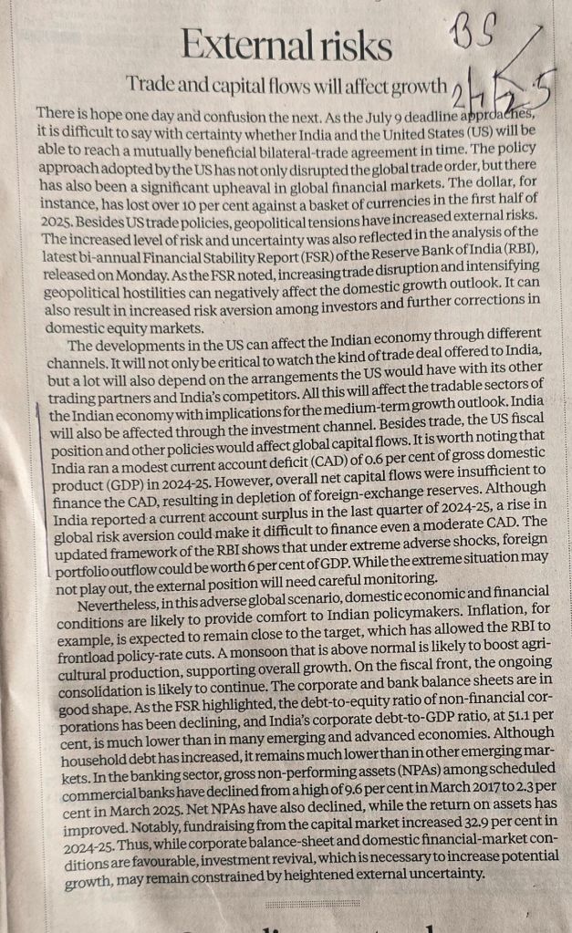 Sum and substance– while domestic levers will be favorable, it is the CAD which could play spoilssport– [2] overall net capital inflows were insufficient to finance CAD–Courtesy Business Standard