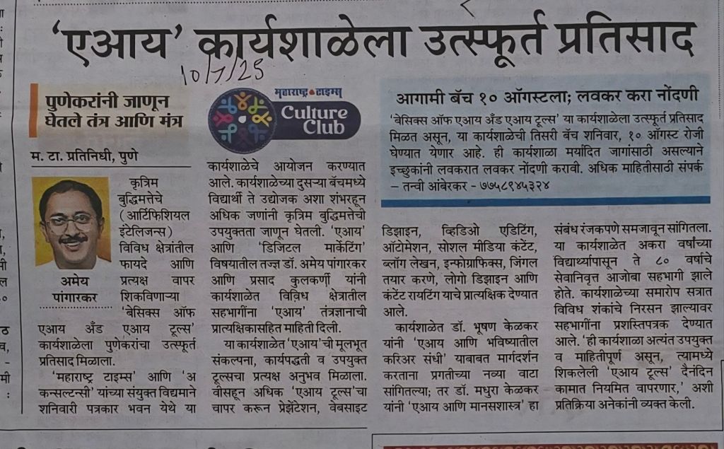 AI workshop in Pune — need to attend and learn — Courtesy Maharashtra Times