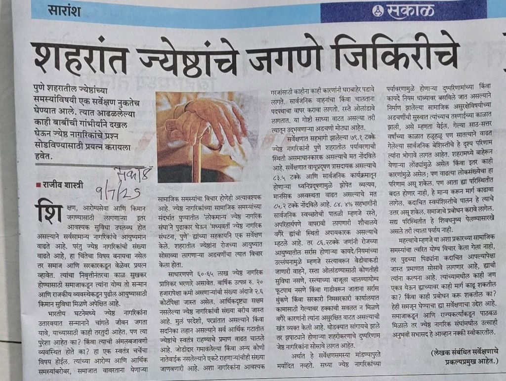 Survey about senior citizens –in Pune –conclusions worth knowing — Courtesy Sakal
