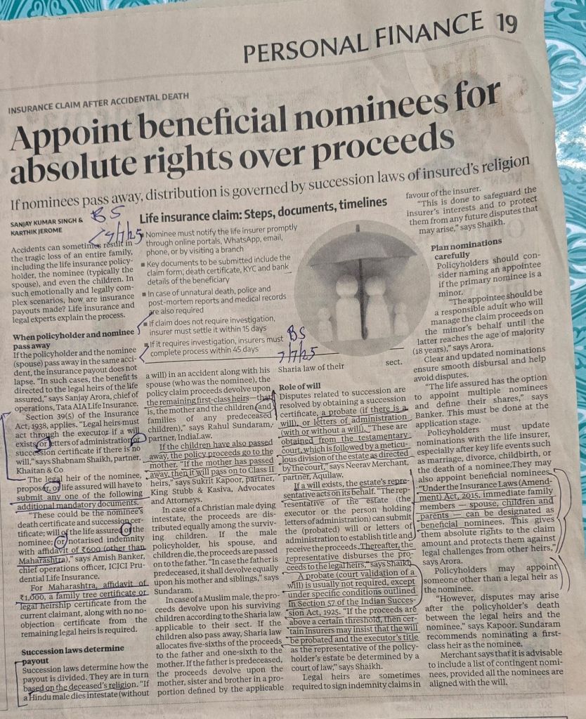 Policy holder may appoint beneficial nominee [or nominees] –[2] know how it facilitates distribution without hurdles–[3] Read marked portion — Courtesy Business Standard