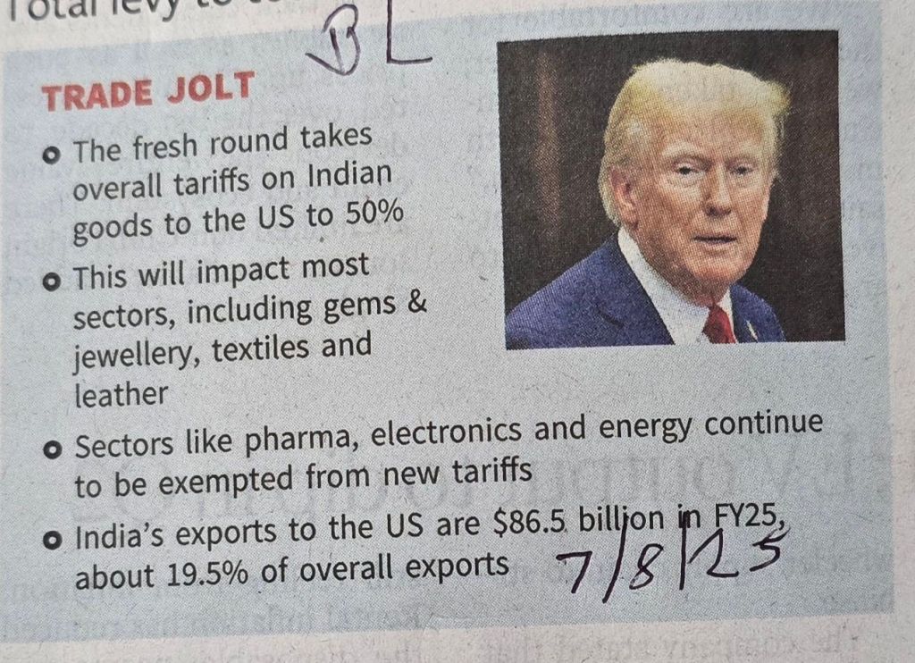 A snapshot -how the 50% tariff by USA will affect India– Courtesy BusinessLine