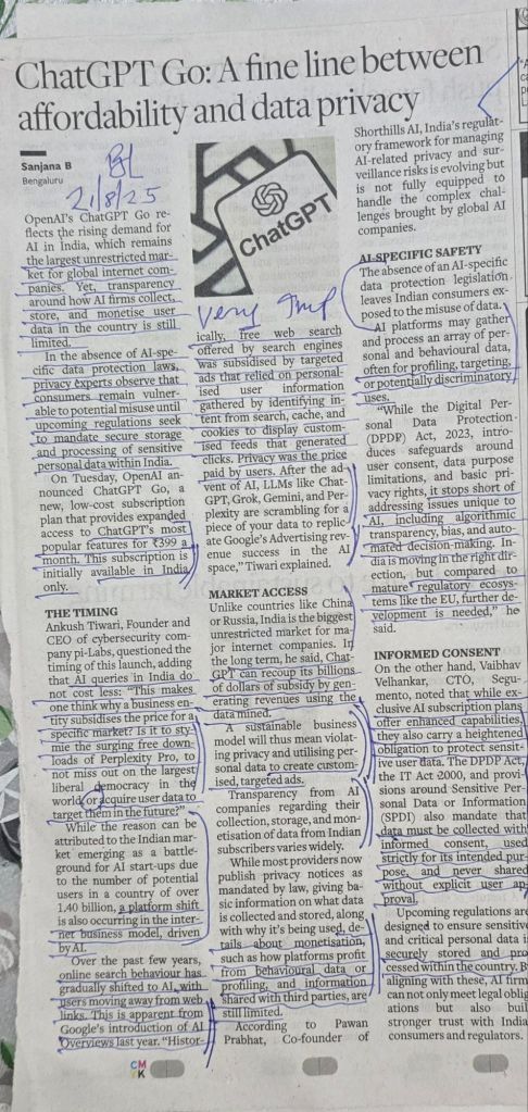 Chat GPT Go – a fine line between Affordability and Data Privacy– Reference BusinessLine
