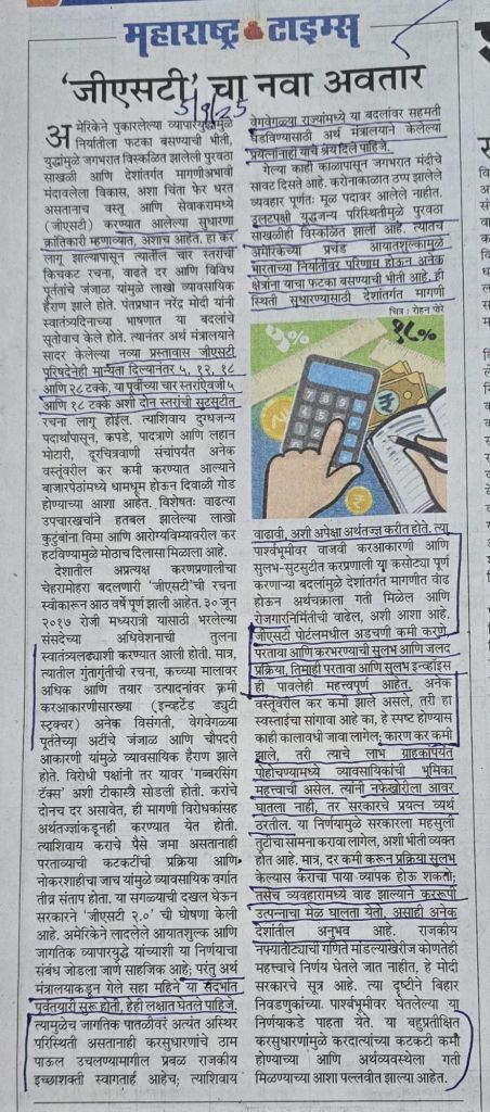 अवश्य वाचावा असा अग्रलेख–समग्र विचार– अर्थव्यवस्था–जागतिक परिस्थिती– मागणी उठाव– तसेच जीसटी कर व्यवस्थेतील सुधारणा– याचा उहापोह — महाराष्ट्र टाइम्स
