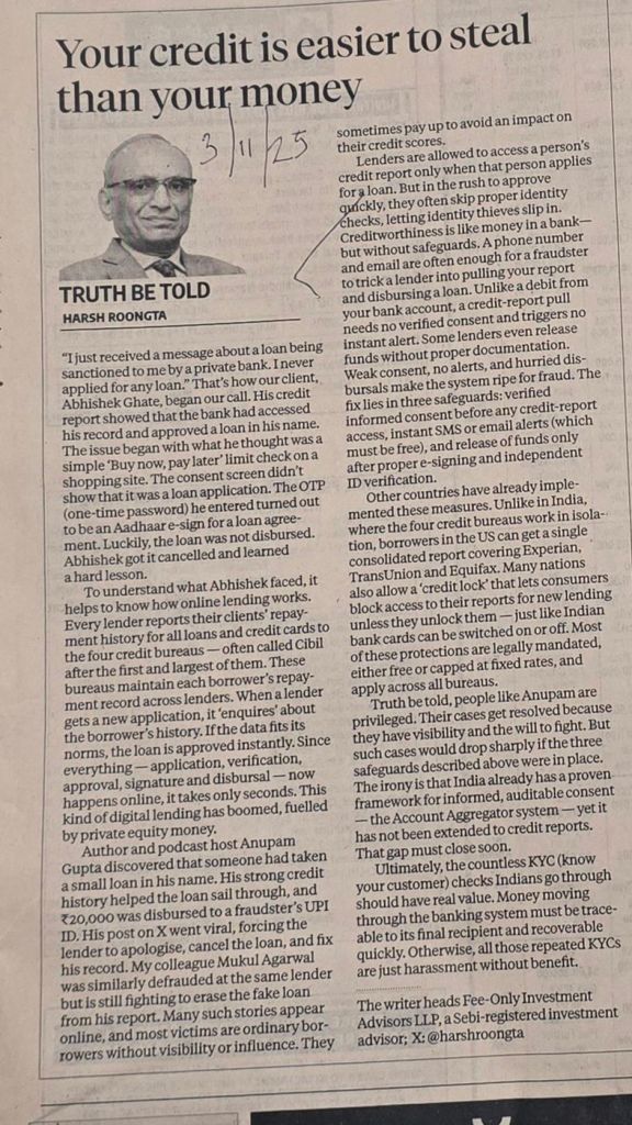 Article in BS explains [1] how online lending works [2] How the 4 credit bureaus work [3] And how repeated KYC exercise is turning out to be harassment without benefit.